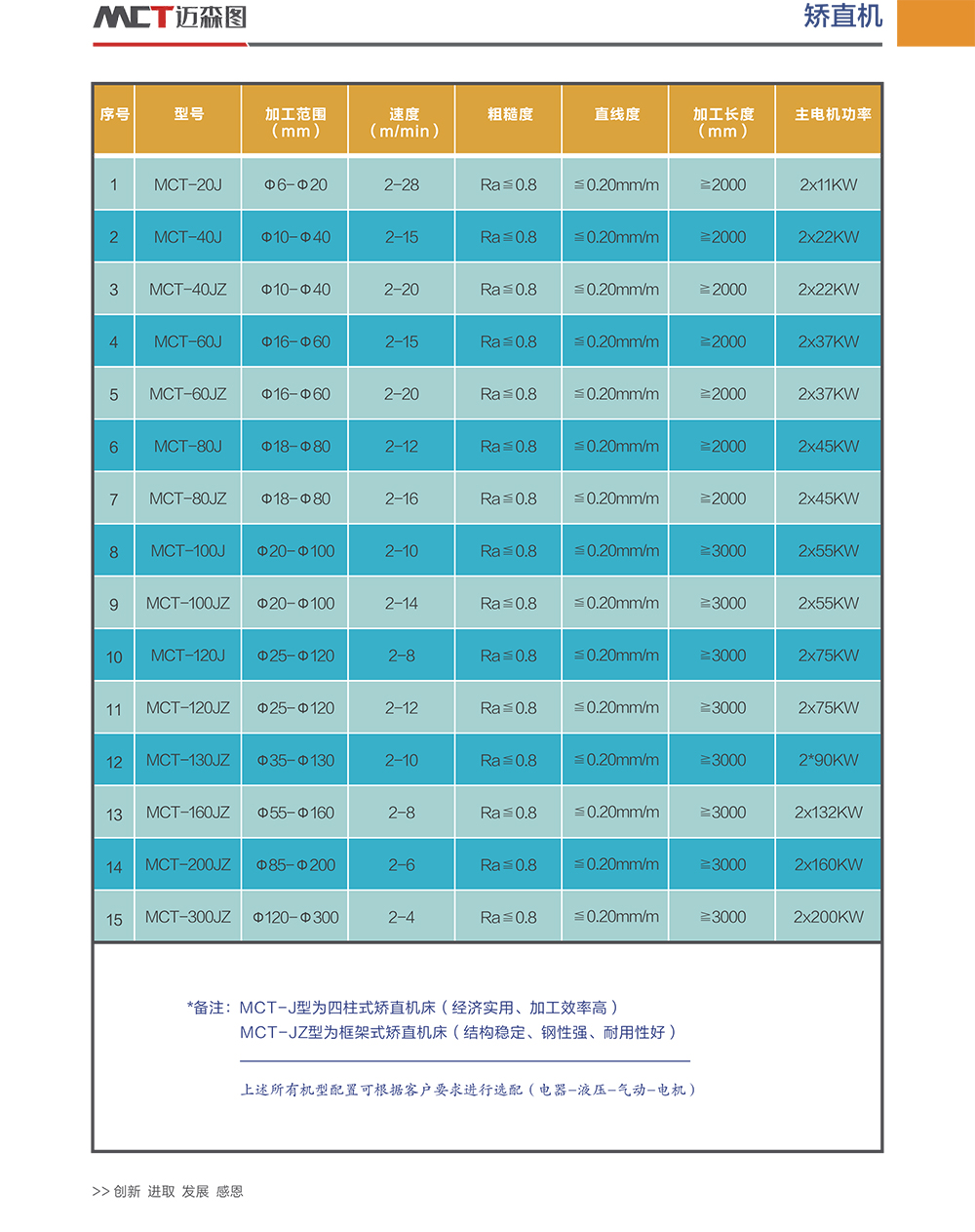 二輥矯直機(jī)針對(duì)各種金屬棒材、管材、線材等進(jìn)行矯直的設(shè)備。原理是通過(guò)矯直輥對(duì)棒材等進(jìn)行擠壓使其改變直線度。依靠?jī)奢仯ㄖ虚g內(nèi)凹,雙曲線輥)的角度變化對(duì)不同直徑的材料進(jìn)行矯直。主要用于結(jié)構(gòu)鋼、合金鋼、彈簧鋼、軸承鋼、工具鋼等黑色金屬材料;也可用于銅及銅合金、鋁及鋁合金、鈦及鈦合金、鎂合金的剝皮或磨削后金屬棒材的精矯表面滾光;同時(shí)還可對(duì)黑皮材和精鍛棒材進(jìn)行矯直。該矯直滾光機(jī)的特點(diǎn)是:實(shí)用性強(qiáng),加工過(guò)程穩(wěn)定,速度快,表面和直線度質(zhì)量好,并且加工精度高。設(shè)備加工范圍可包括從Φ12mm至Φ300mm整個(gè)區(qū)段各種機(jī)型。